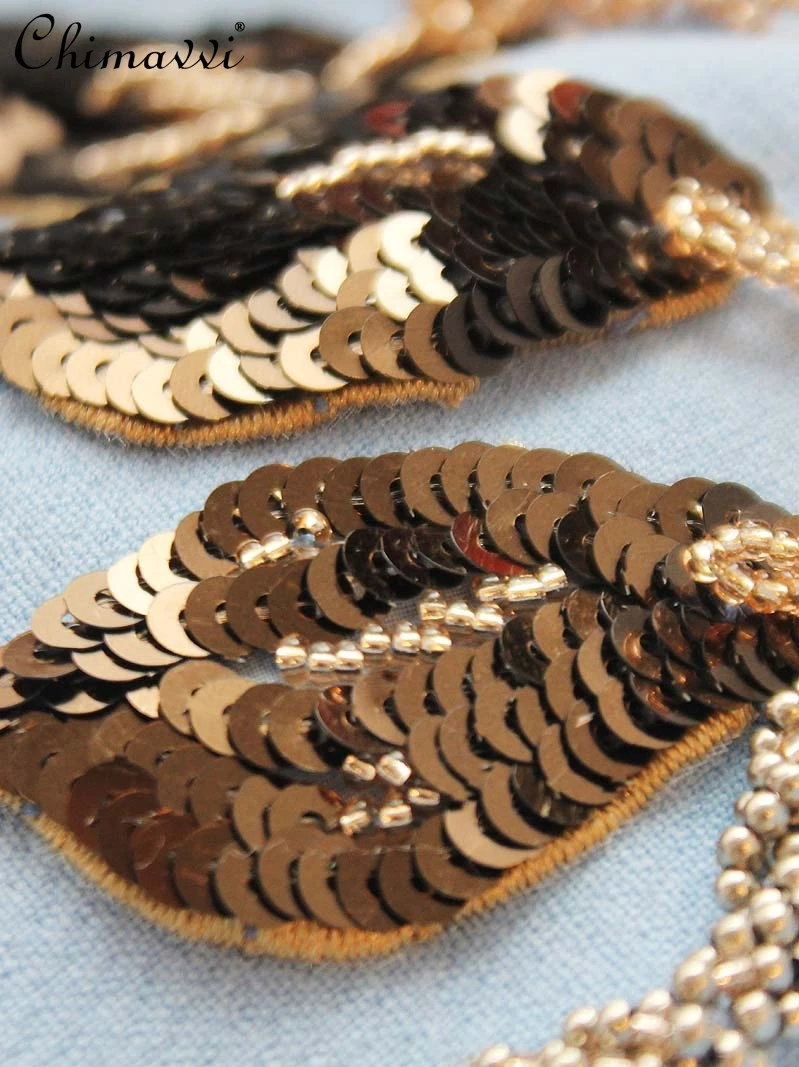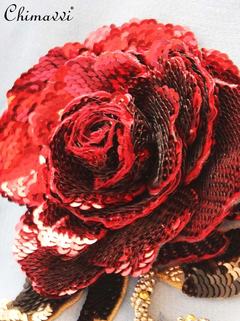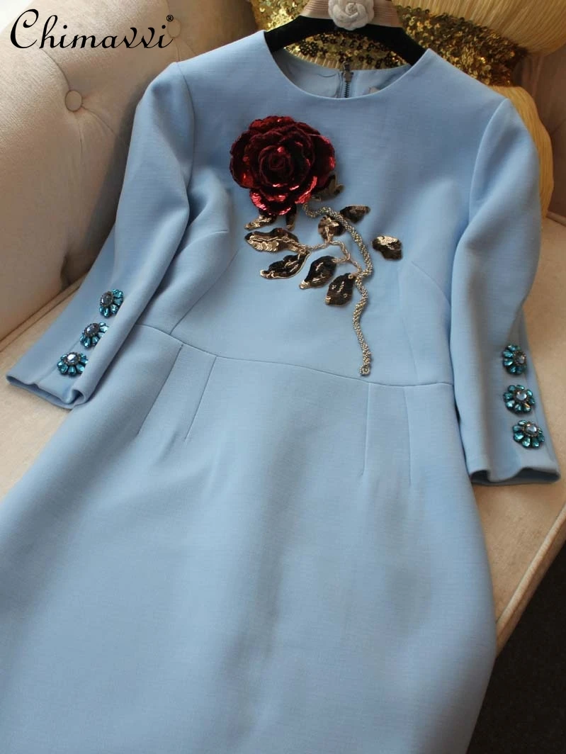 European French Sequined Rose Beaded Retro Blue Long Sleeves Dress 2024 Autumn New High-End Slim Elegant Party Dress WomenEuropean French Sequined Rose Beaded Retro Blue Long Sleeves Dress 2024 Autumn New High-End Slim Elegant Party Dress Women